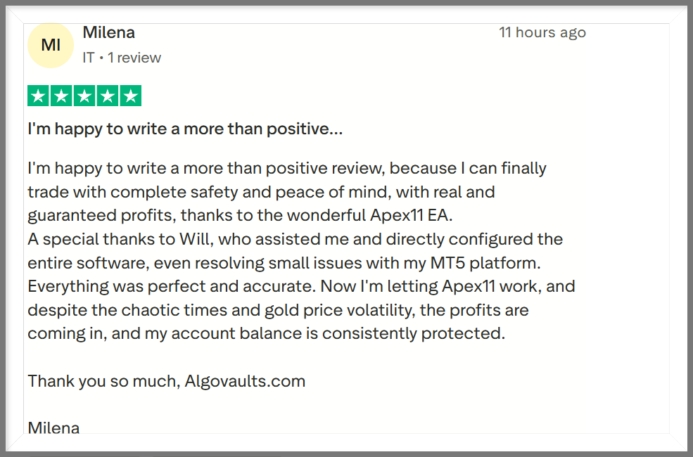 Once in a trade, Apex11 behaves like an experienced Gold trader would.